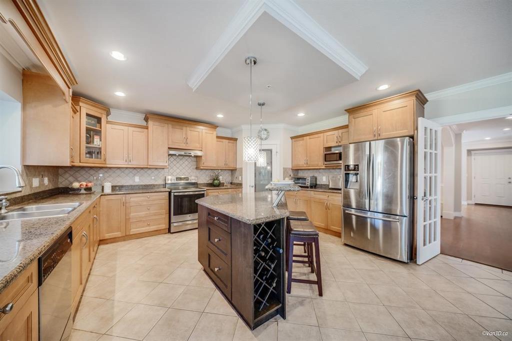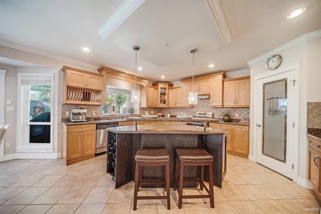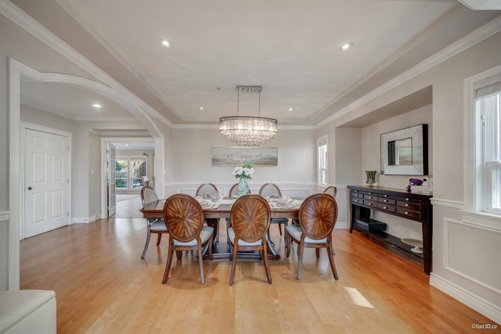 Nestled near White Rock beach, this stunning mansion is a serene masterpiece spanning 7991 sq ft, with 8 beds and 6 baths. Its airy living room welcomes you with soaring ceilings and ample natural light. Outside, a meticulously crafted backyard golf course harmonizes with nature. Enjoy cozy warmth from the zone-controlled radiant heating, hardwood floors, and plush carpets throughout. A fully equipped gourmet kitchen and spacious living areas facilitate quality family time. With a private office on the first floor and four bedrooms on the second, it caters to large families. The basement offers two suites with separate entrances, ideal for rental or personal use. Plus, there's indoor double garage and room for 7 cars in the front yard, perfect for gatherings.
